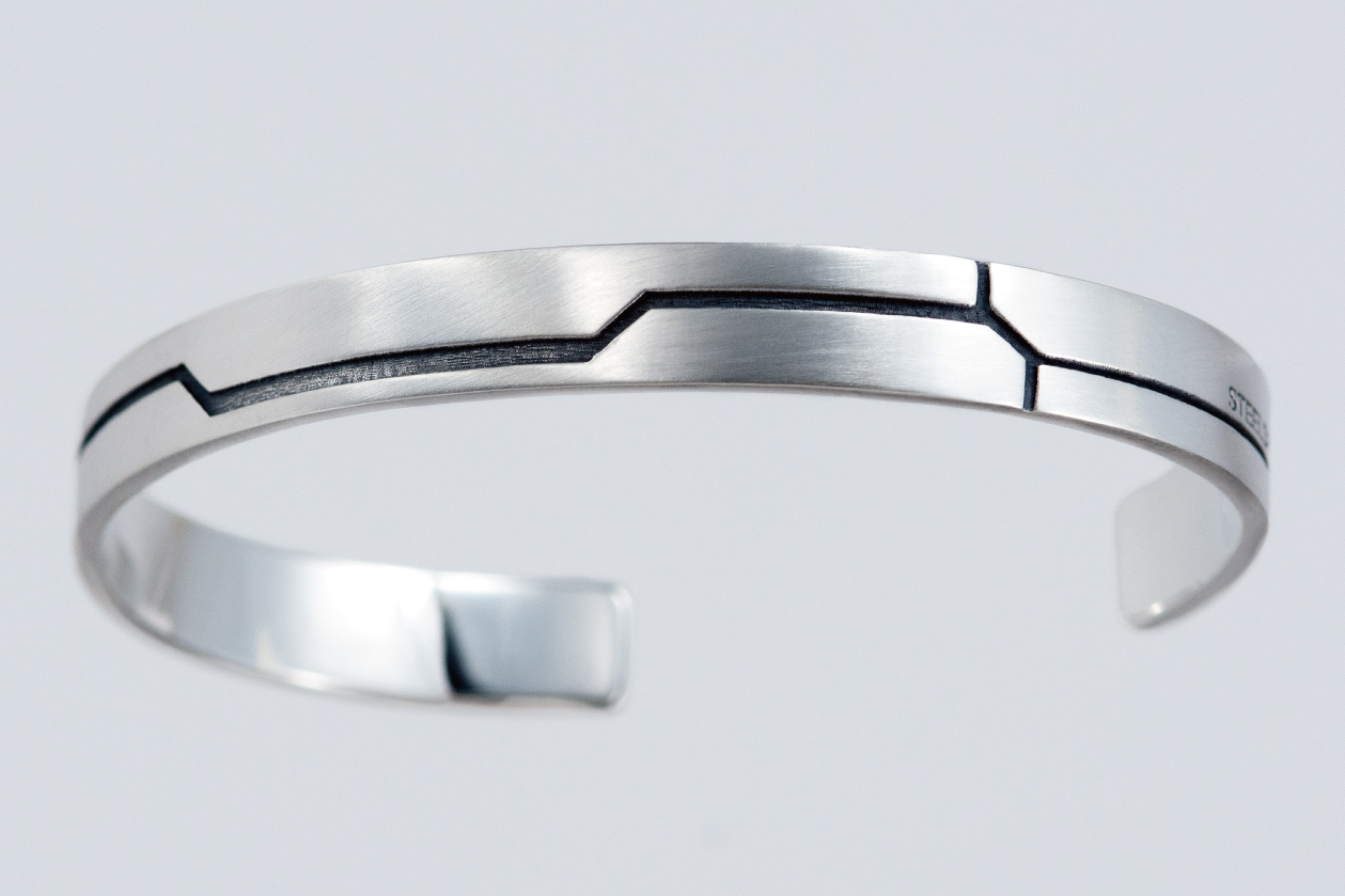 ¥ 30,000 (税込)/材質:シルバー925/サイズ:Sサイズタイプ(手首まわり140mm〜165mm推奨)|Mサイズタイプ(手首まわり165mm〜170mm推奨)/幅:約6.8mm/製造国:日本(ハンドメイド)